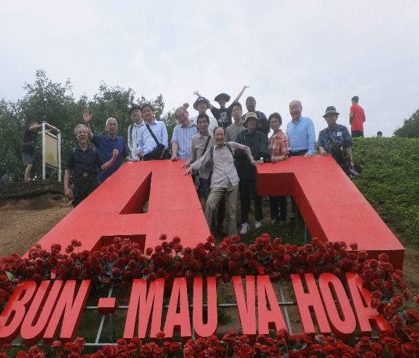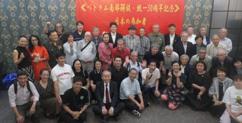 ・JVPF基本グループは抗仏闘争勝利の節目となったデイエンビエンフーを訪ね、ハノイでは日本軍侵攻と支配下で発生した“200万人餓死事件犠牲者慰霊碑”を参拝した。そしてハノイで越日友好協会のグエン・フー・ビン副会長夫妻(元・駐日ベトナム大使夫妻)を招いてベトナム解放統一50周年記念した祝賀食事会を開催、ここには1996年の枯葉剤被害者支援チャリティ―コンサート第1回目に来日してもらったハノイ市立タンロン楽団のNguyen・Huynh・Tuさん、Hoang・Anh・Tuさんも参加いただき、鎌田篤則JVPF副理事長とは20年ぶりの再会となった。