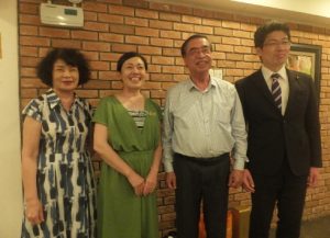 〈下左写真:〉越日友好協会を招いての祝賀食事会で。右から山登志浩・衆議院議員、グエン・フー・ビン元駐日ベトナム大使、岩田京子・吉川市議会議員、グエンフービン夫人。(5月2日)